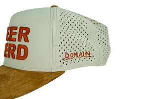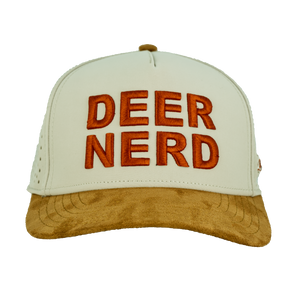 CRAFTED IN A PREMIUM STONE FRONT WITH CAMEL SUEDE BILL, THIS HAT DELIVERS A TIMELESS OUTDOOR LOOK THAT’S JUST AS AT HOME IN THE FIELD AS IT IS AT CAMP. THE “DEER NERD” EMBROIDERY POPS FRONT AND CENTER — CLEAN, BOLD, AND PROUDLY DOMAIN.